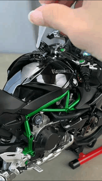 【Material & Highlight】-The main body of the Kawasak Ninja motorcycle model is made of alloy diecast motorcycle model materials and high-quality plastics,the tire part is made of rubber.The intricate details such as rotatable support pedals, twistable front wheels also enrich the motorcycle's realism and appeal. This design not only ensures the excellent durability of the motorcycle model 1:9, but also enhances the overall authenticity and collection value of the 1:9 motor model.
